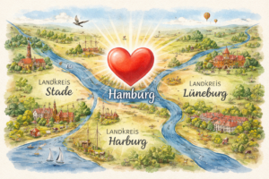 Hamburg im Herzen und die Landkreise Stade, Harburg und Lüneburg im Blick.